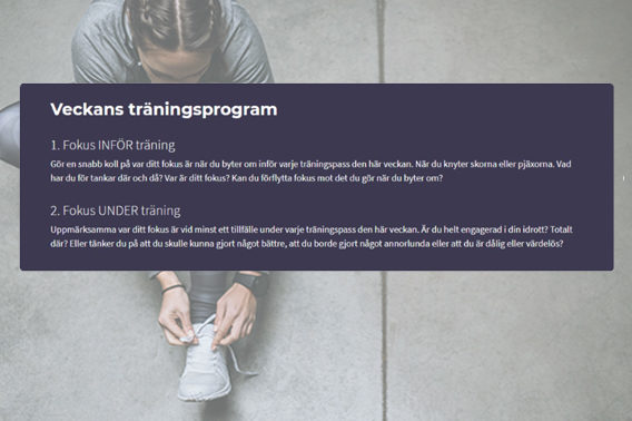 Här kan du se exempel på några av de mer interaktiva metoderna och inslagen i Next Acts mentala träningsprogram. Ju mer noggrann du är med dina analyser, skattningar och övningar, desto mer kommer du få ut av programmet!